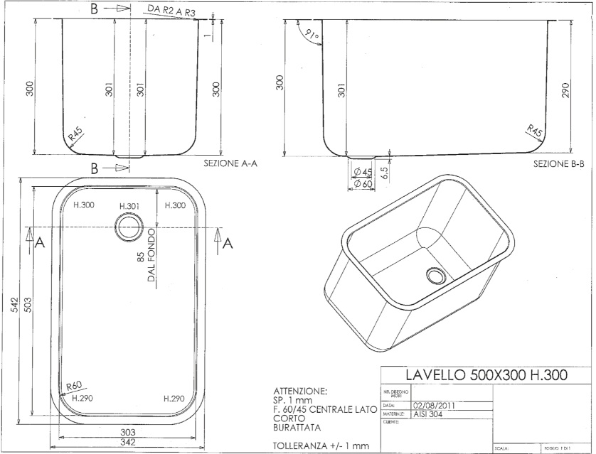 with embossed drain 1 1/2" and welded rim